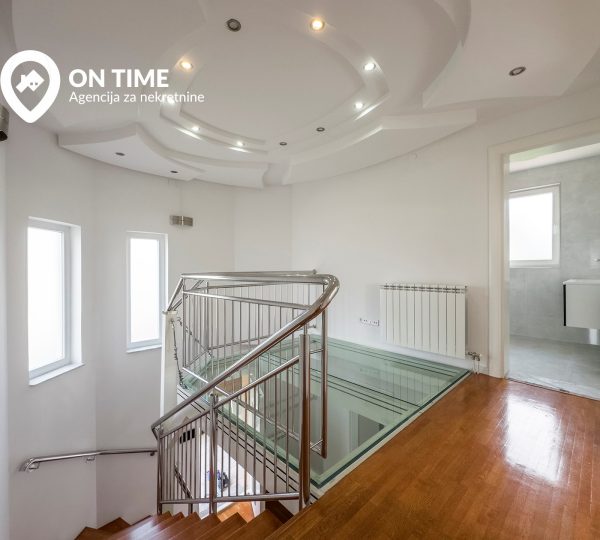 - Prvi sprat: tri spavaće soba, degažman, kupatilo, dva balkona i galerija sa staklenim podom