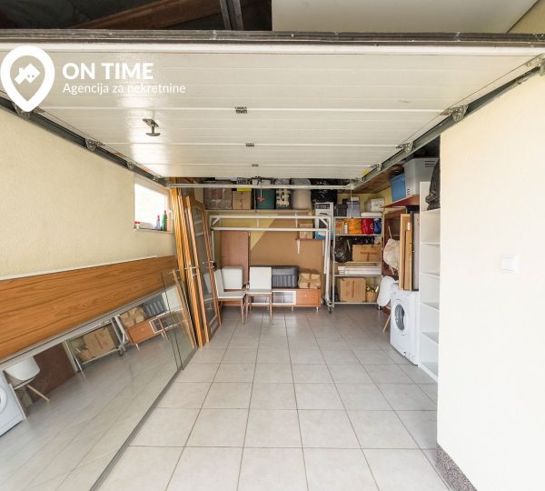 - Prizemlje: Dnevni boravak sa kuhinjom i trpezarijom, kupatilo, hodnik, stepenište, balkon plus garaža (18m2)