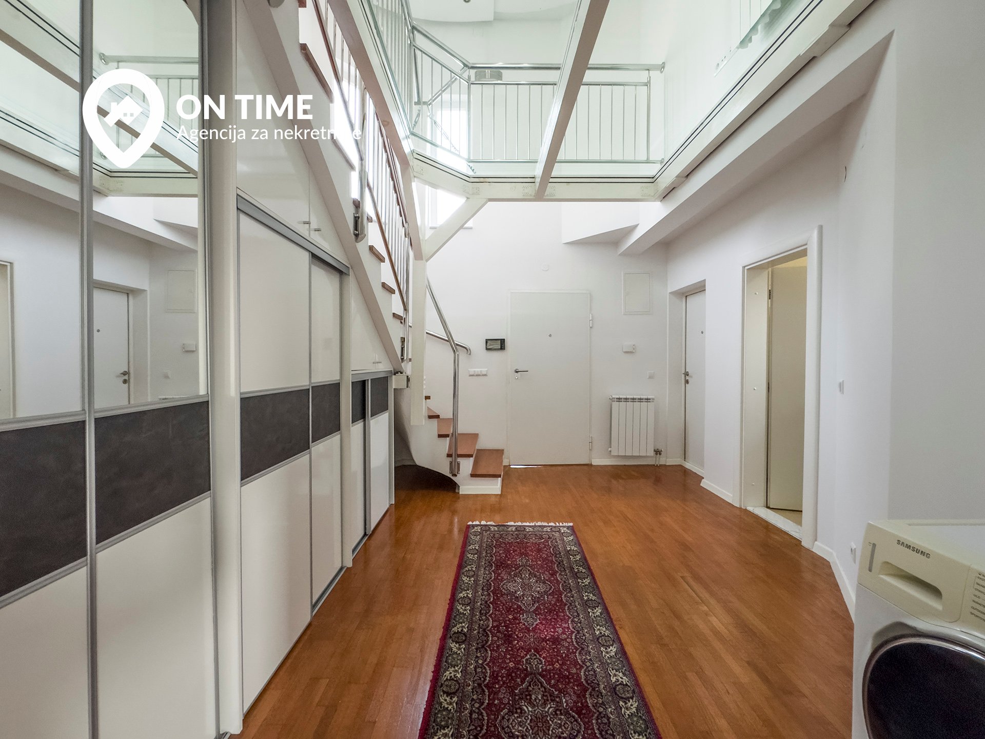 Obloga stepeništa je laminiranim drvetom hrastovog porijekla. Podovi u garaži I balkonima su popločani keramičkim pločicama.