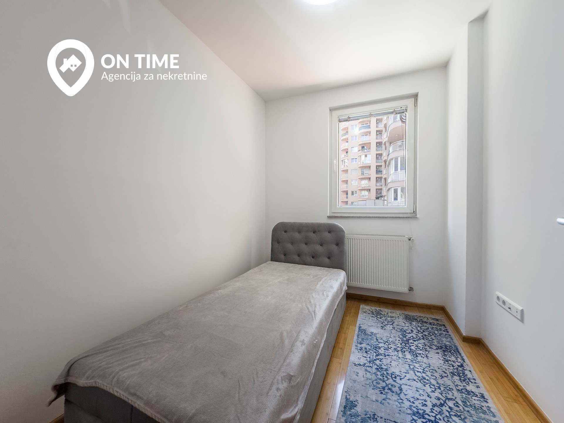 STANDARD: Plinsko etažno grijanje; Vanjska PVC stolarija; Unutrašnje žaluzine; Unutrašnja drvena stolarija; Parket u sobama (bambus); Keramičke pločice u kuhinji, kupatilu, hodniku i balkonu; Interfon; Automatski osigurači; Klima uređaj; Blindo vrata; Lift..